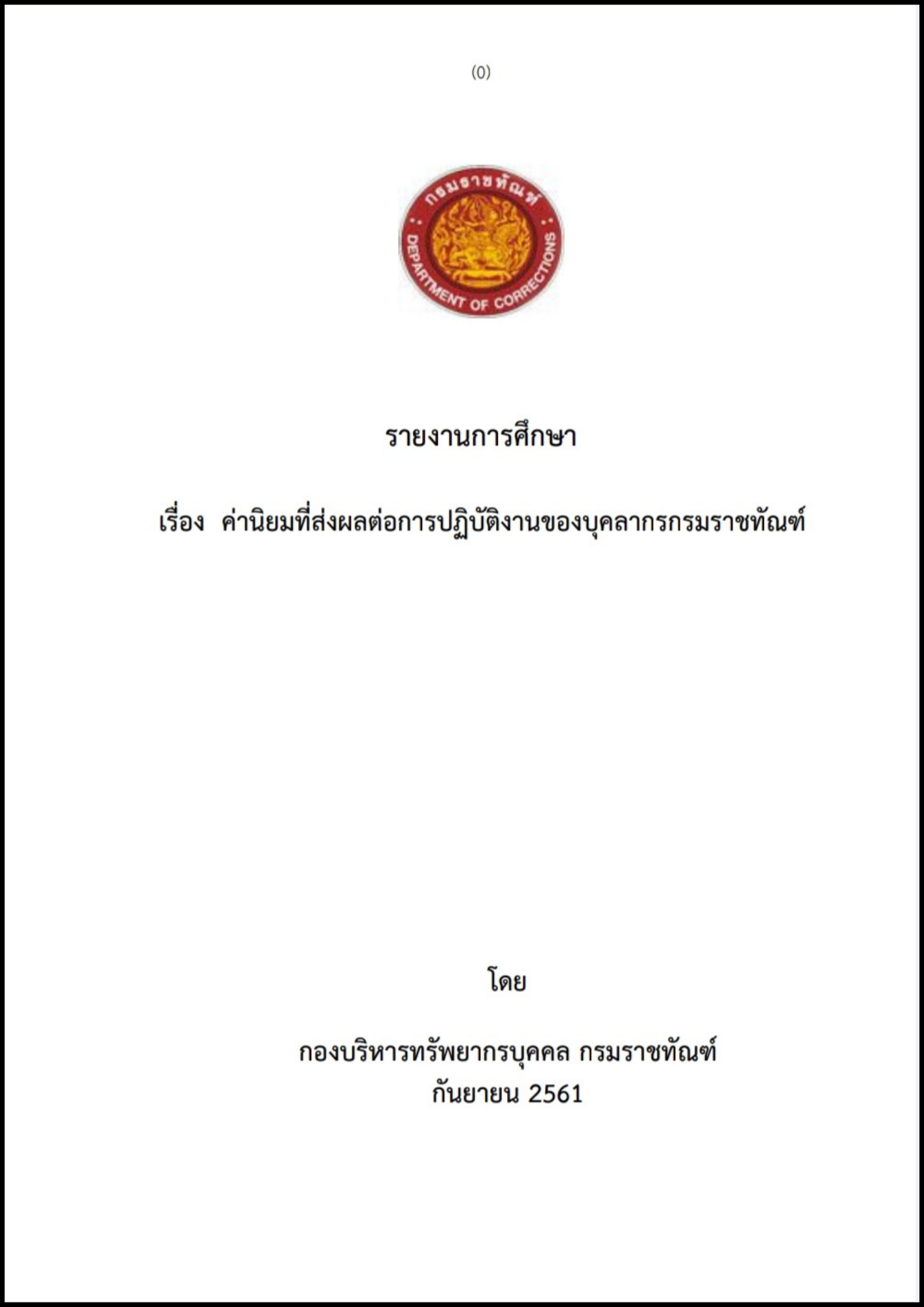 หน่วยงาน/ผู้วิจัย | กองบริหารทรัพยากรบุคคล กรมราชทัณฑ์ |
