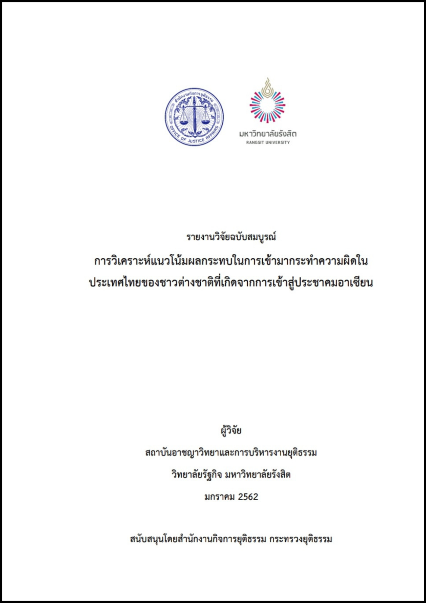 การวิเคราะห์แนวโน้มผลกระทบในการเข้ามากระทำความผิดในประเทศไทยของชาวต่างชาติที่เกิดจากการเข้าสู่ประชาคมอาเซียน