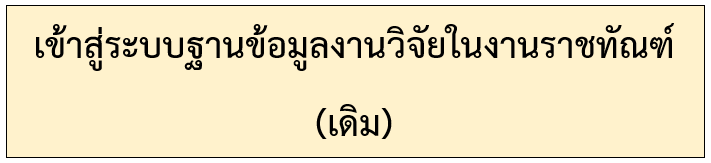 “เนื่องจากขณะนี้เว็บไซต์ฐานข้อมูลงานวิจัยในงานราชทัณฑ์อยู่ระหว่างปรับปรุงเพื่อเพิ่มประสิทธิภาพ โดยท่านยังสามารถเข้าสู่ระบบเดิมได้โดยการคลิกที่ด้านล่าง ”