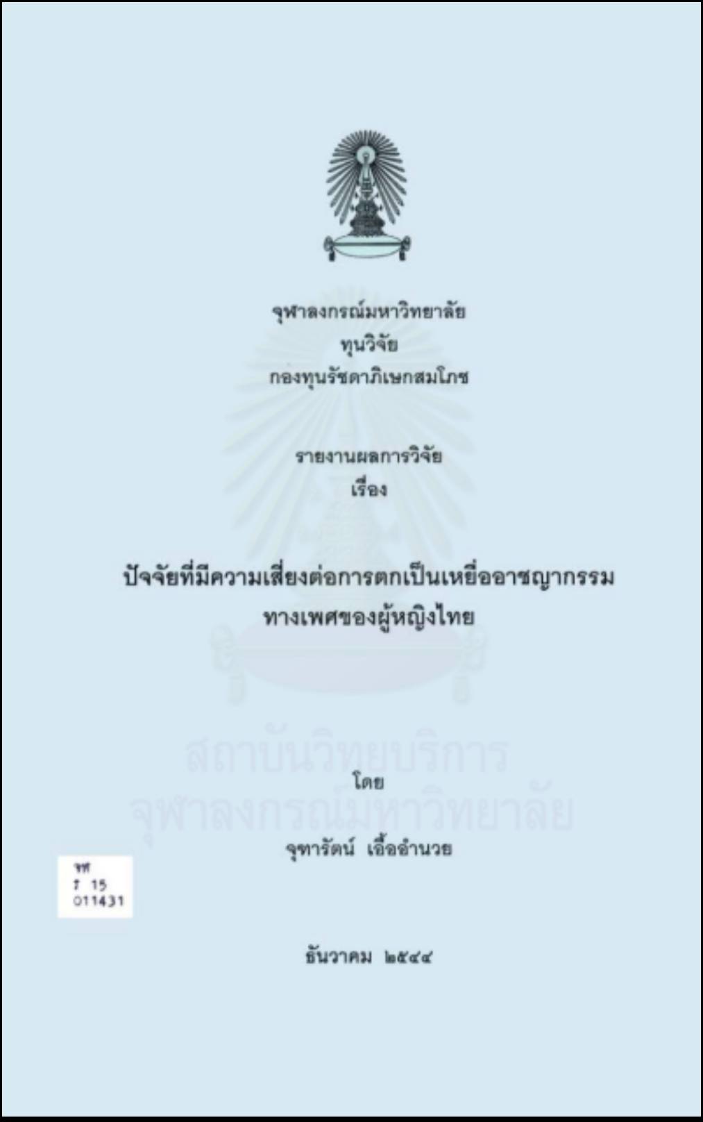ปัจจัยที่มีความเสี่ยงต่อการตกเป็นเหยื่ออาชญากรรมทางเพศของผู้หญิงไทย