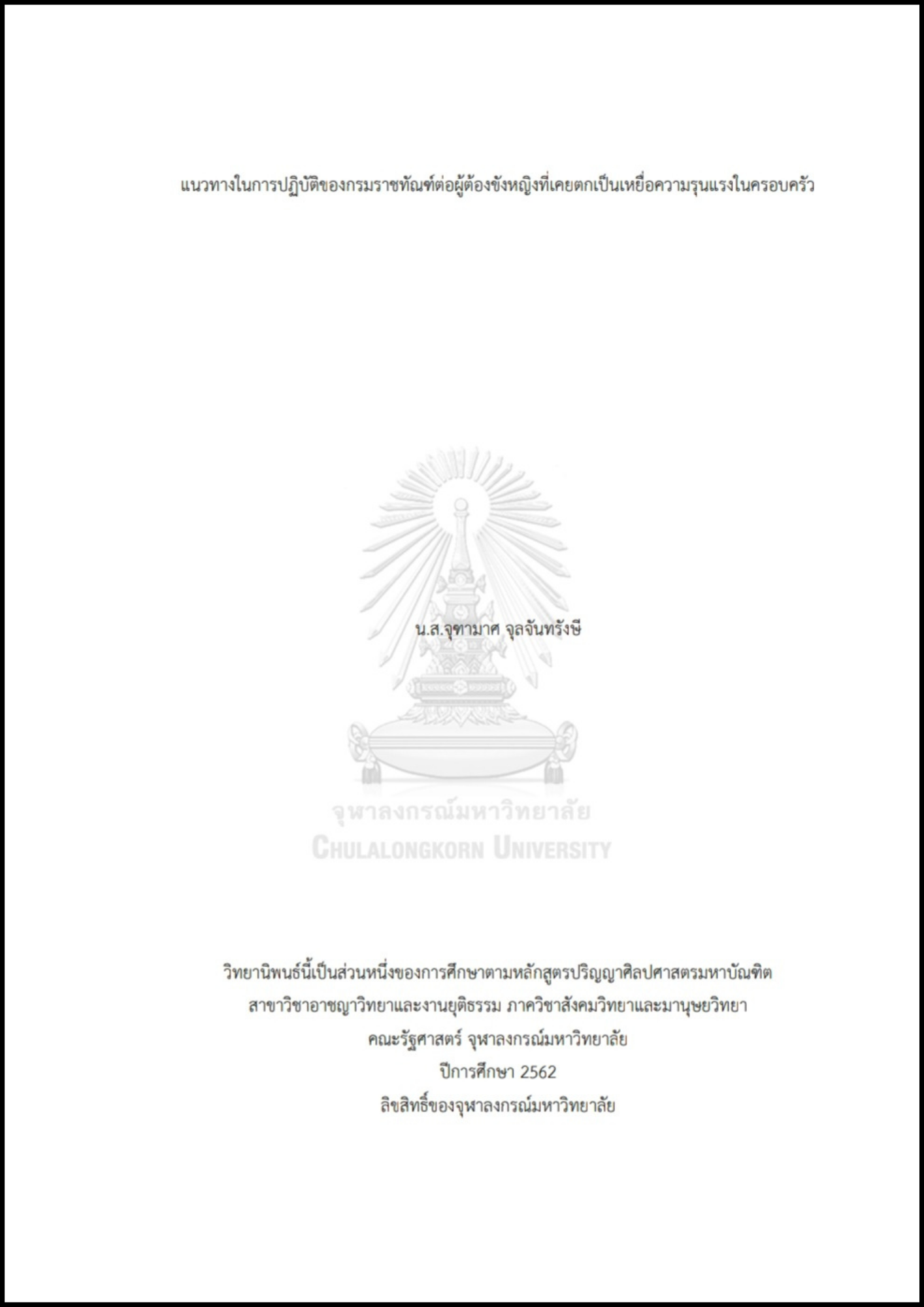 แนวทางในการปฏิบัติของกรมราชทัณฑ์ต่อผู้ต้องขังหญิงที่เคยตกเป็นเหยื่อความรุนแรงในครอบครัว