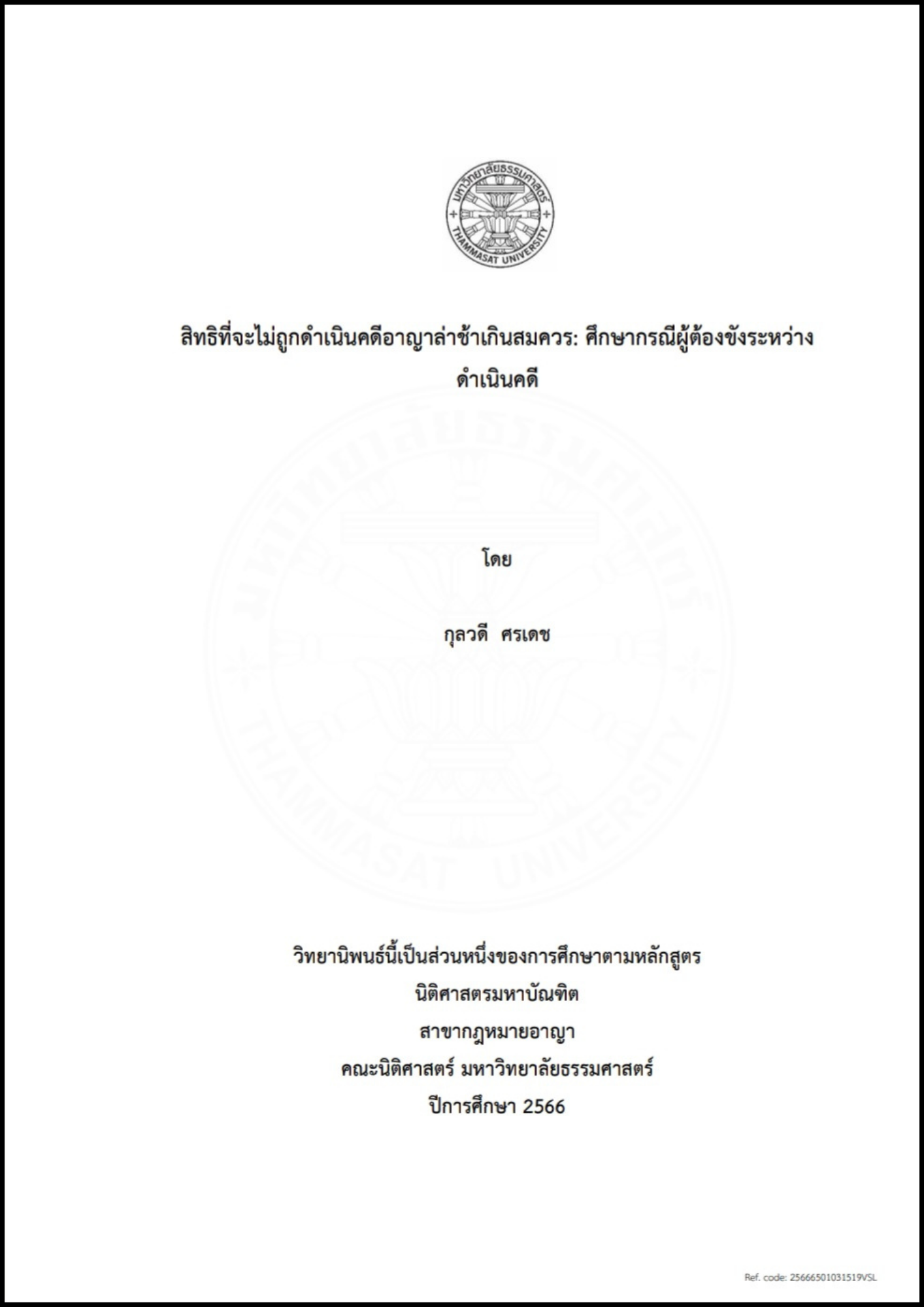 สิทธิที่จะไม่ถูกดำเป็นคดีอาญาล่าช้าเกินสมควรศึกษากรณีผู้ต้องขังระหว่าง