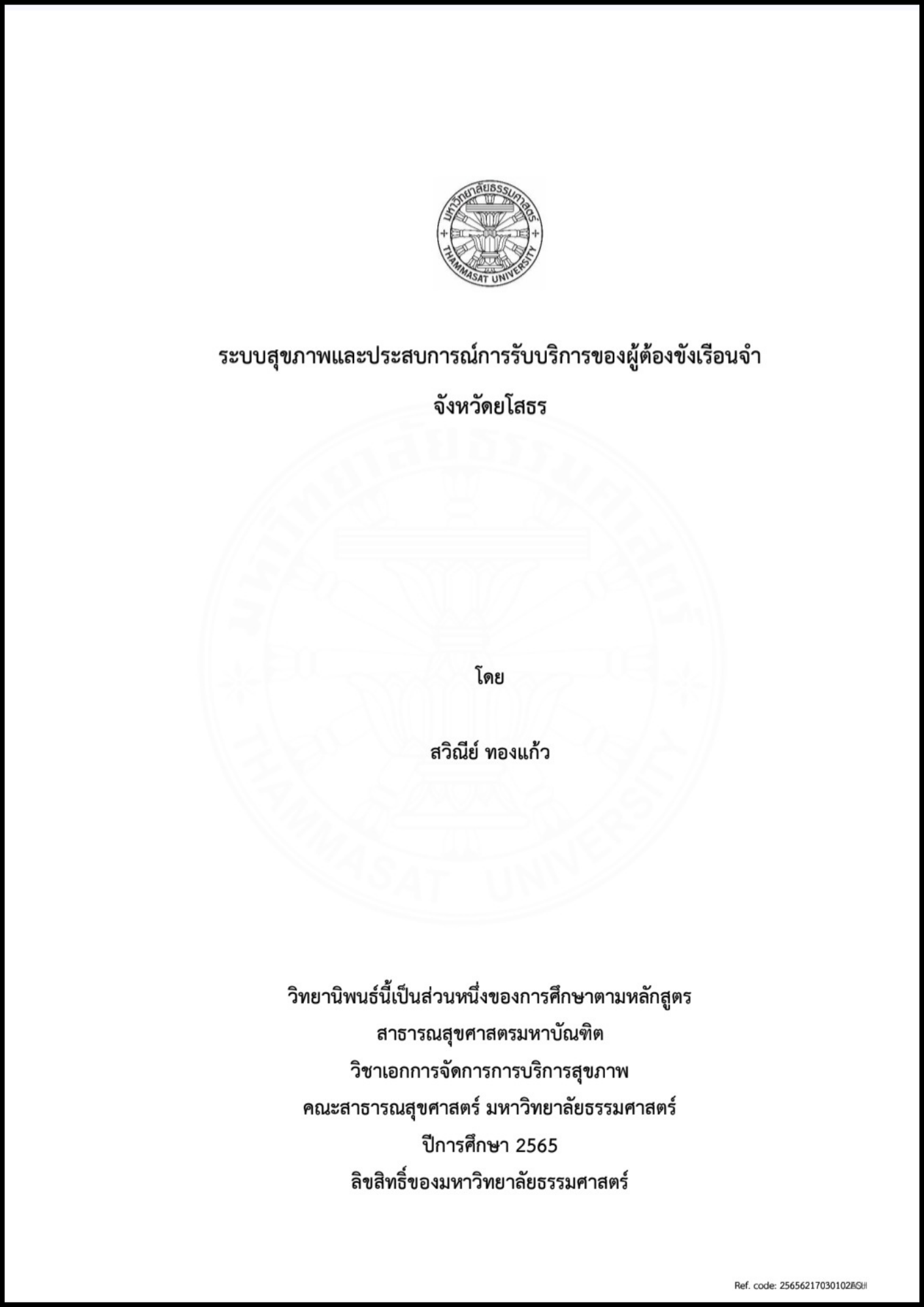 ชื่อเรื่อง/โครงการวิจัย | ระบบสุขภาพและประสบการณ์การรับบริการของผู้ต้องขังเรือนจำจังหวัดยโสธร |