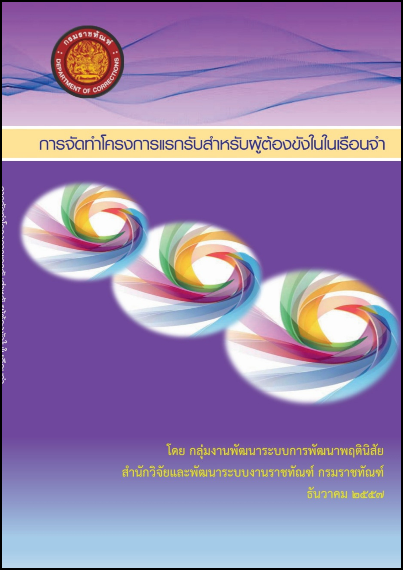 3.) เพื่อจัดทำคู่มือการอบรมผู้ต้องขังแรกรับให้กับเรือนจำและทัณฑสถานทั่วประเทศ