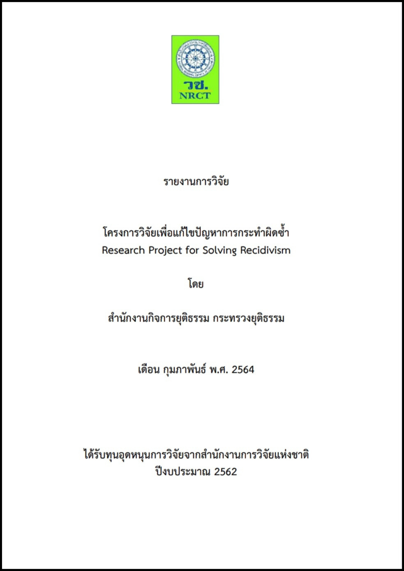 ชื่อเรื่อง/โครงการวิจัย | โครงการวิจัยเพื่อแก้ไขปัญหาการกระทำผิดซ้ำ |