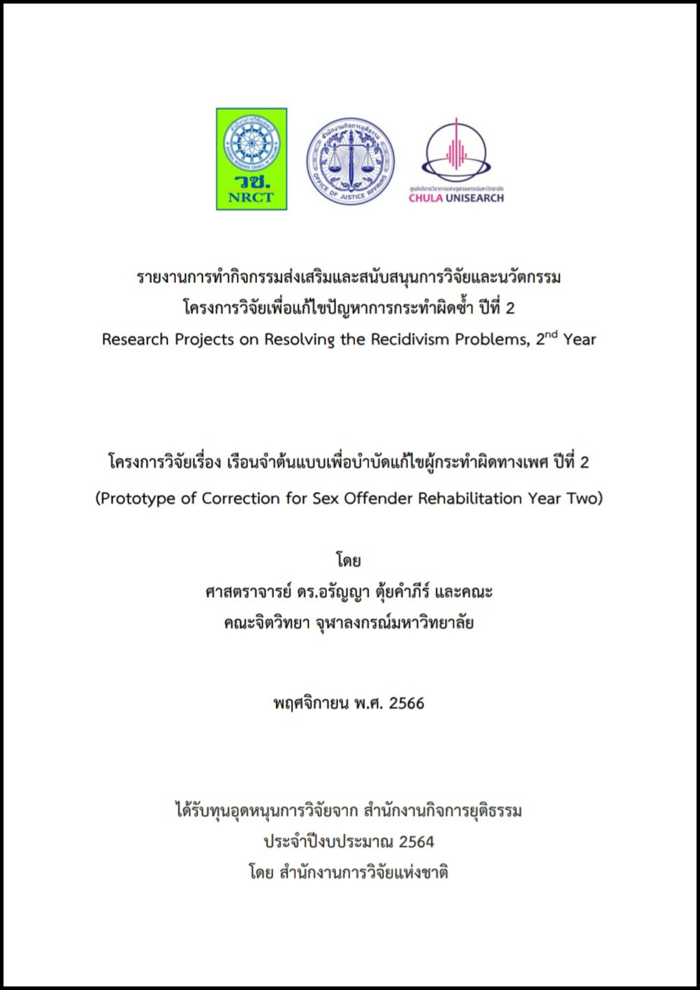 โครงการวิจัยเรื่องเรือนจำต้นแบบเพื่อบำบัดแก้ไขผู้กระทำผิดทางเพศ ปีที่ 2
