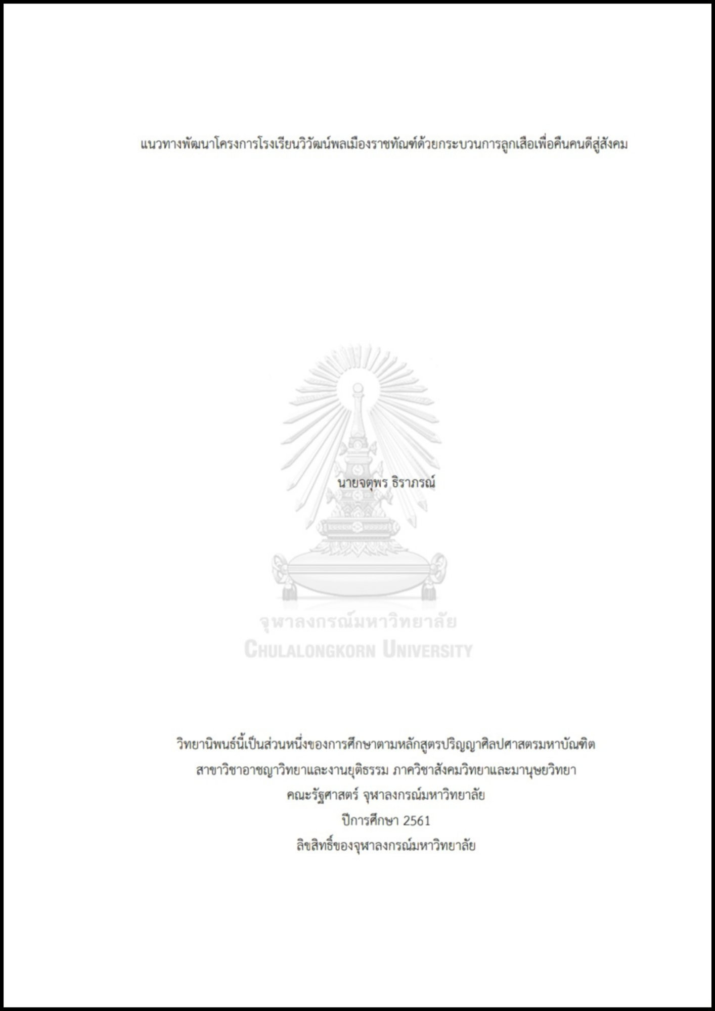 แนวทางพัฒนาโครงการโรงเรียนวิวัฒน์พลเมืองราชทัณฑ์ด้วยกระบวนการลูกเสือเพื่อคืนคนดีสู่สังคม