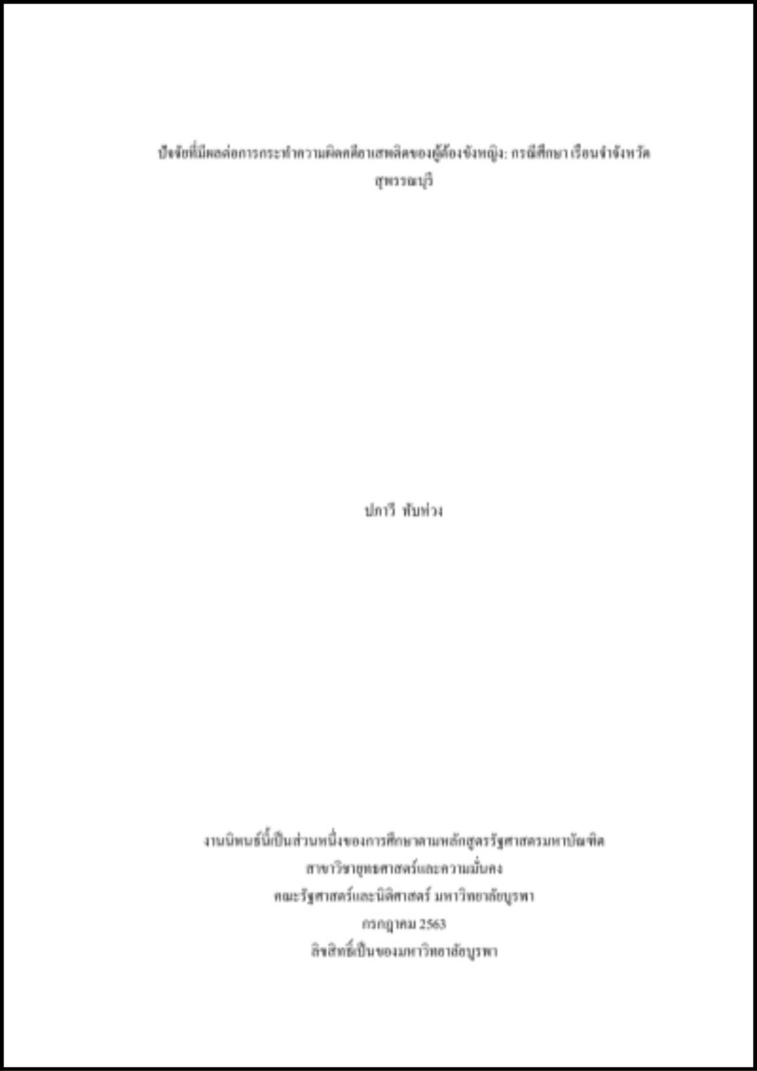 ปัจจัยที่มีผลต่อการกระทำความผิดคดียาเสพติดของผู้ต้องขังหญิง กรณีศึกษา เรือนจำจังหวัดสุพรรณบุรี